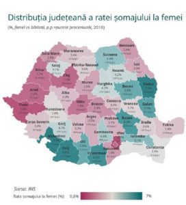 La nivel local, cea mai mare rată a șomajului din rândul femeilor a fost înregistrată în Vaslui, Mehedinți și Dolj (7%), în timp ce la polul opus se află Ilfov, Timiș și București (între 0,8% și 1,4%). Studiul a fost prezentat la gala Women in Economy 2020, organizată de Confederația Națională pentru Antreprenoriat Feminin.